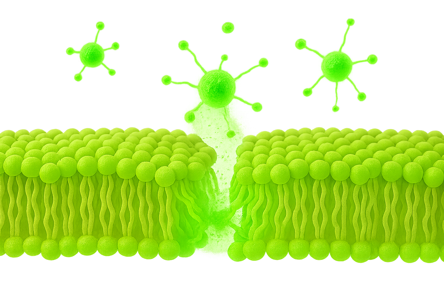 Рівномірно розподіляючись по негативно зарядженій мембрані, Grainactive за рахунок позитивного заряду стабілізує та ущільнює її, утримуючи ліпідний бішар у стабільній конфігурації.